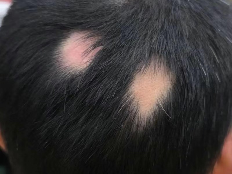 头上突然出现一块或数块边界清晰、完全光滑的圆形脱发区,这通常是斑秃。这被认为是一种自身免疫性疾病,免疫系统错误地攻击了自身的毛囊。精神压力常是其诱发或加重的因素之一。